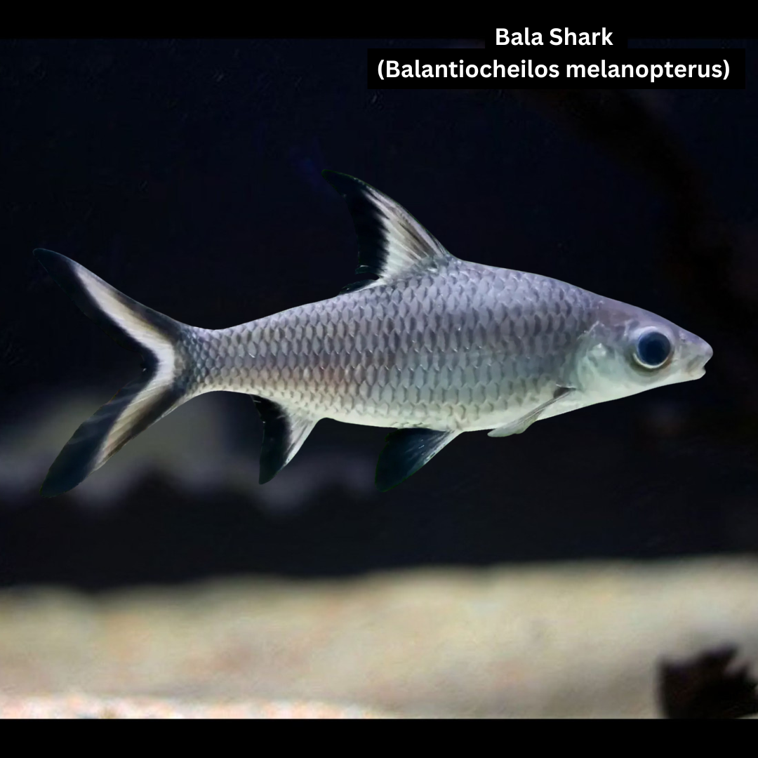 The Bala Shark, also known as the Silver Shark, is a peaceful and energetic freshwater species prized for its sleek silver body, bold black-edged fins, and constant, graceful movement. Although called a “shark,” this fish is actually a type of cyprinid, known for its schooling behavior and active swimming style.