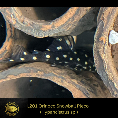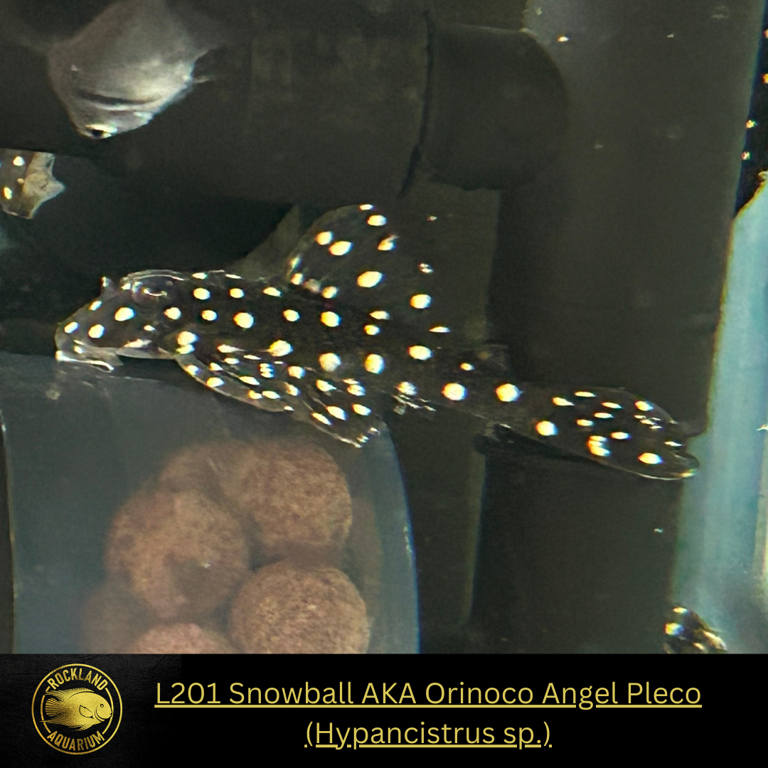 The L201 Snowball Pleco (Hypancistrus sp.), also known as the Orinoco Angel Pleco, is a striking freshwater catfish native to the upper Rio Orinoco in Venezuela. Its distinctive black body adorned with bright white or yellow polka dots makes it a popular choice among aquarists seeking a visually appealing and manageable species.