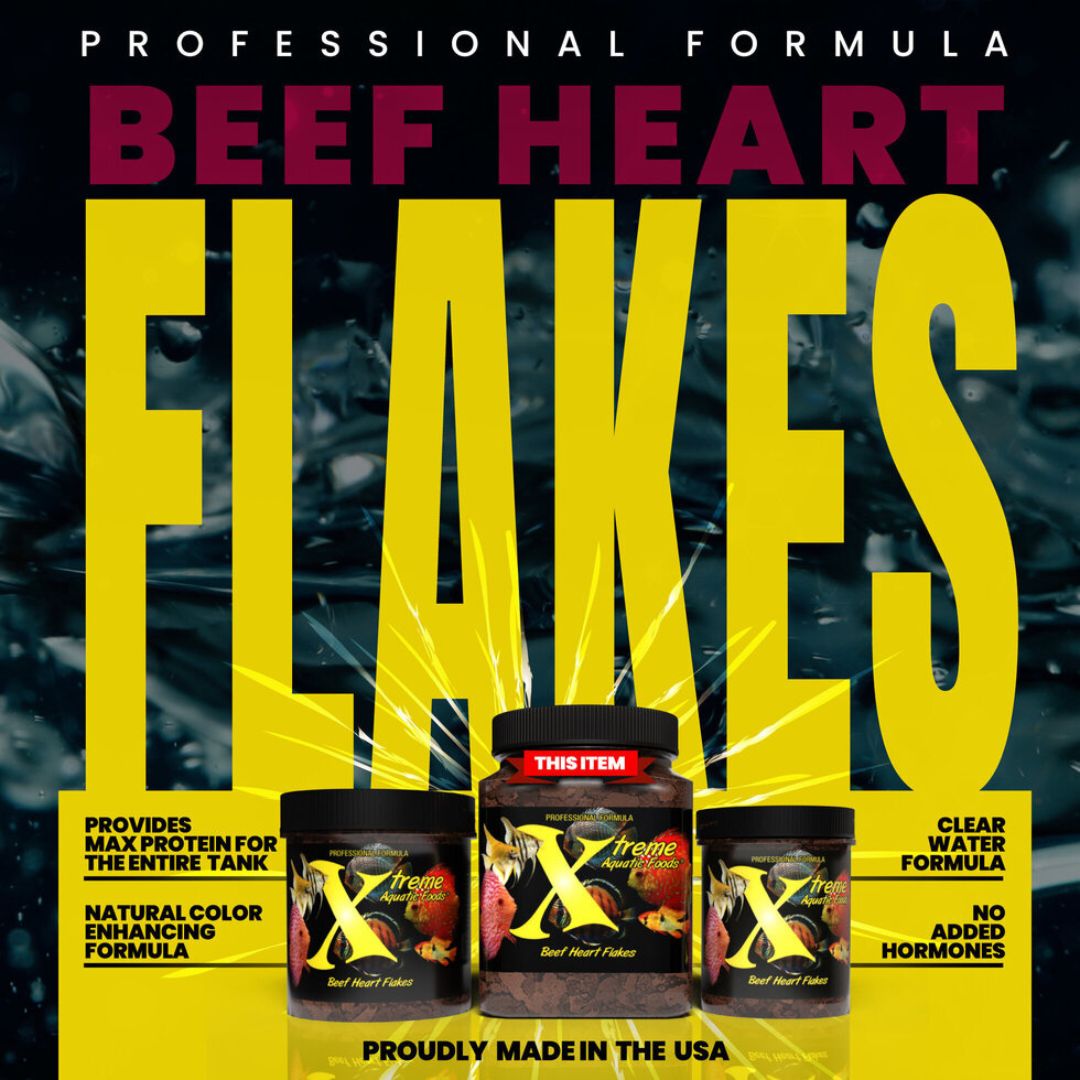 Transform and improve your tropical fish's health, vitality and diet with Xtreme Beef Heart Flake food - the perfect blend of high protein, all essential amino acids, vitamins, and minerals! This nutrient-rich fish food is a rich source of protein and contains all essential amino acids to help support healthy muscle growth and overall fish health. The crisp flake texture can easily be crushed into fine flakes, making it ideal for small fish and adding variety to their diet. Not to mention, Xtreme Beef Heart Flake food encourages breeding behaviors and is an ideal food for Discus, Angelfish, Apistogrammas and Rams - even the pickiest eaters! And with its lab-tested pathogen-free formula, you can trust that you're providing your fish with safe and healthy nutrition. Eagerly consumed by both captive-bred and wild-caught fish, Xtreme Beef Heart Flake food is a must-have for any fish owner looking to enhance their fish's beauty and vitality. Also, a great supplementary food for your fishes everyday diet. Try it today and watch your fish thrive!