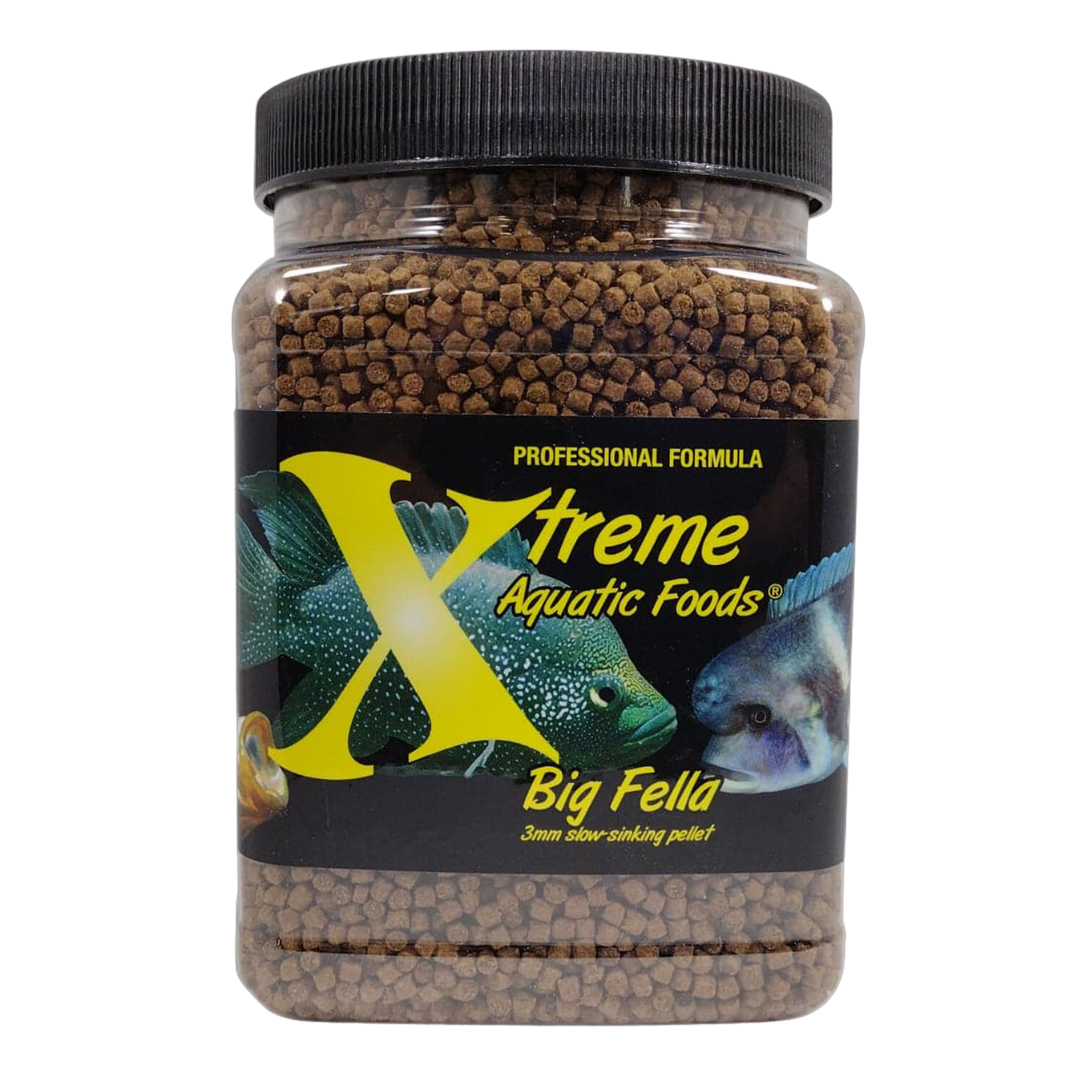 Xtreme Big Fella 3mm Pellets are a high-protein, slow-sinking food designed for large tropical and cichlid fish. Packed with natural color enhancers and premium marine proteins, this formula promotes vibrant coloration, strong growth, and optimal health. The 3mm pellet size is ideal for medium to large fish such as cichlids, Oscars, and similar species.