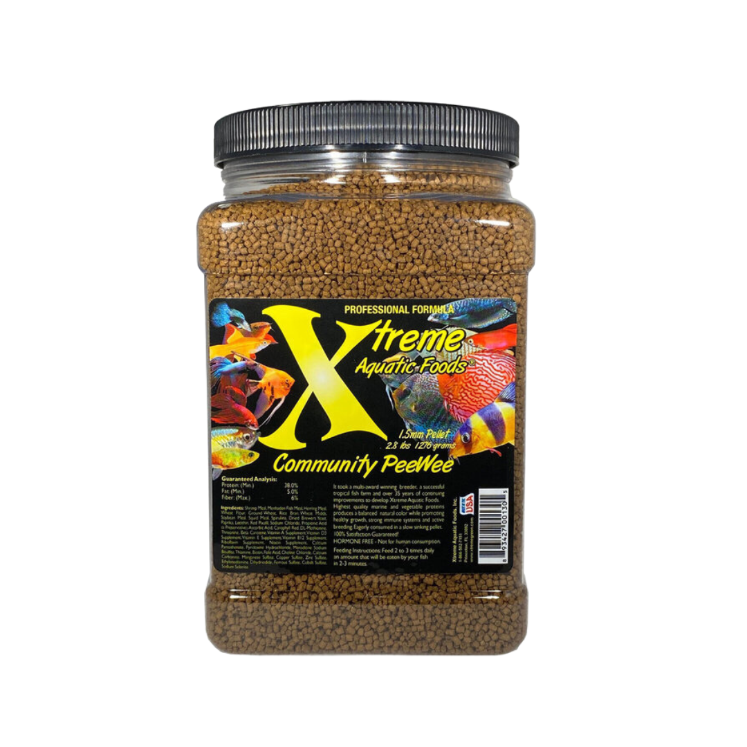 Xtreme Community PeeWee® 1.5mm Slow-Sinking Pellets are the perfect everyday diet for small to medium community fish. Formulated with premium ingredients like krill meal, shrimp meal, and spirulina, these pellets deliver complete nutrition for vibrant color, steady growth, and long-term health. The slow-sinking design allows fish at all levels to feed comfortably, reducing waste and keeping aquarium water cleaner.